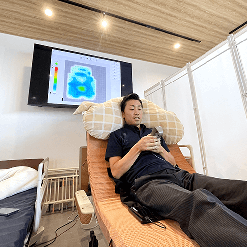 体圧分散性能がモニター画面で一目でわかる! クッションやマットレスの選定時にお役立て頂けるようショールームでいつでもお試しいただけます。マットレスやクッションで思う存分性能比較を体験してください。