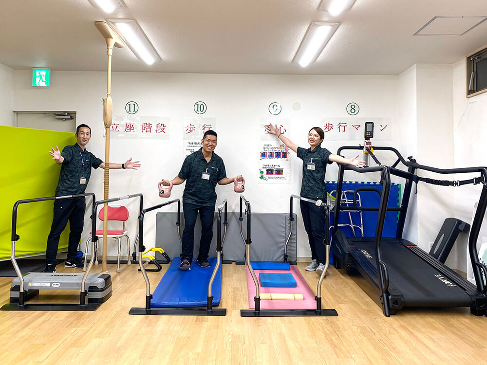 - 相談員と看護師が施設の説明と面談、運動用具などの説明をさせていただき、実際に運動の体験をしていただきます。